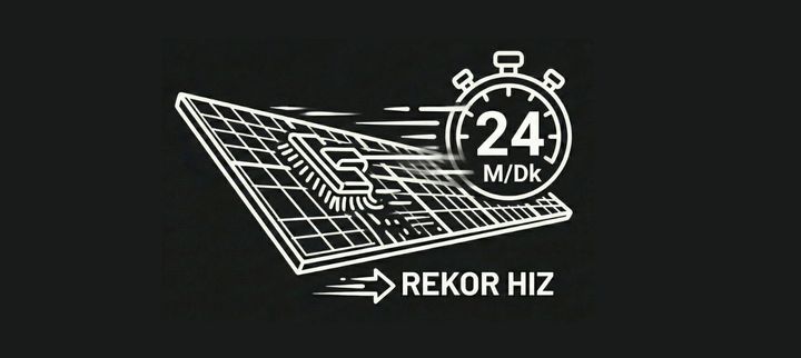 Dakikada 24m hızla günde 3 MWp temizlik kapasitesi sunar.